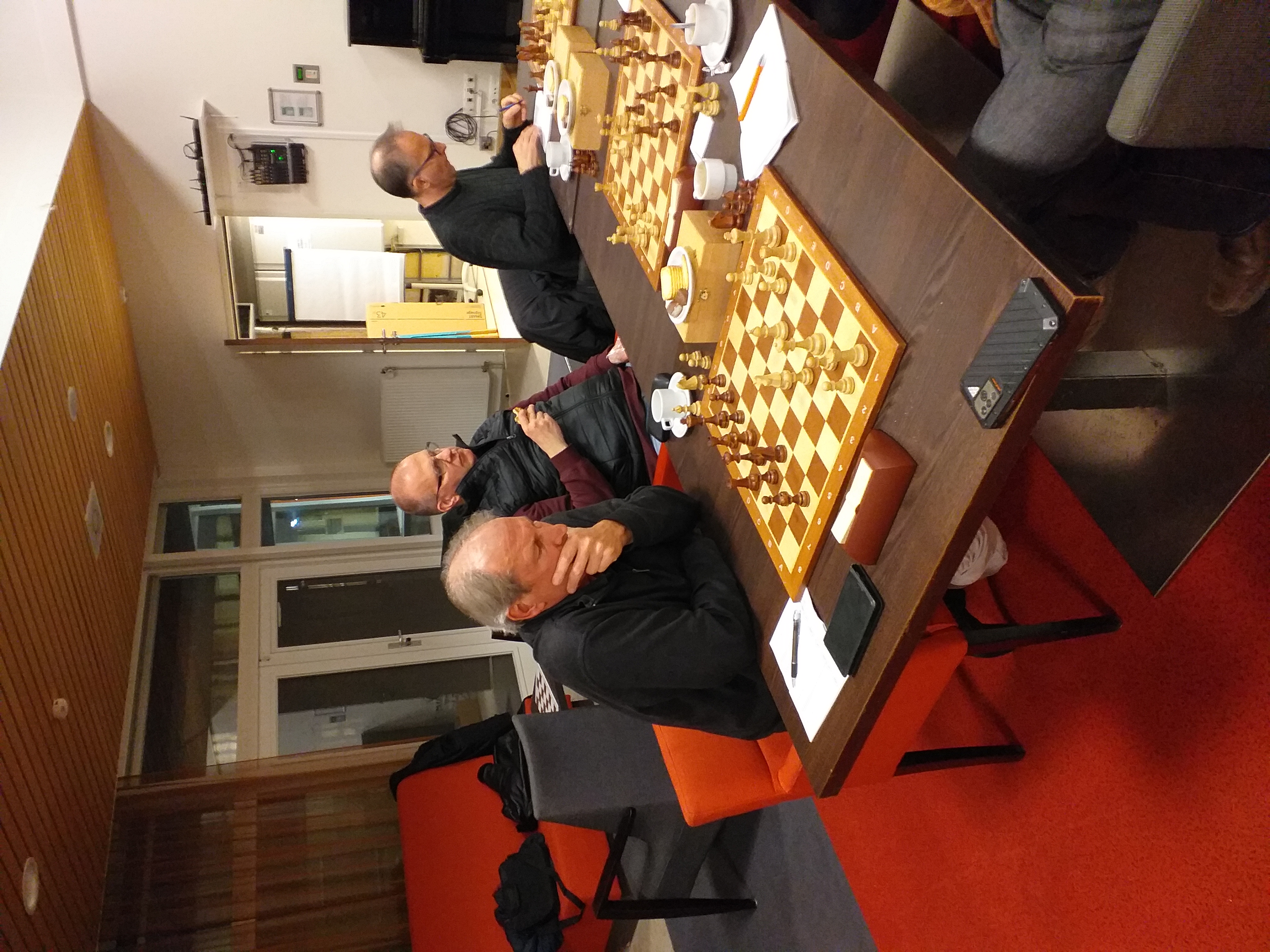 Henk startte in een zeer sterke groep met zelfs de latere winnaar (rating 2200+), 3 snelle nederlagen. Daarna ging het iets beter, 2,5 uit 6. Johan kwam in de eerste 9 partijen tot slechts 1,5…. U leest het goed, hij kwam slechts tot 1,5 punt….Ik zou het er nog even inwrijven had ik hem gezegd. Bij deze.
